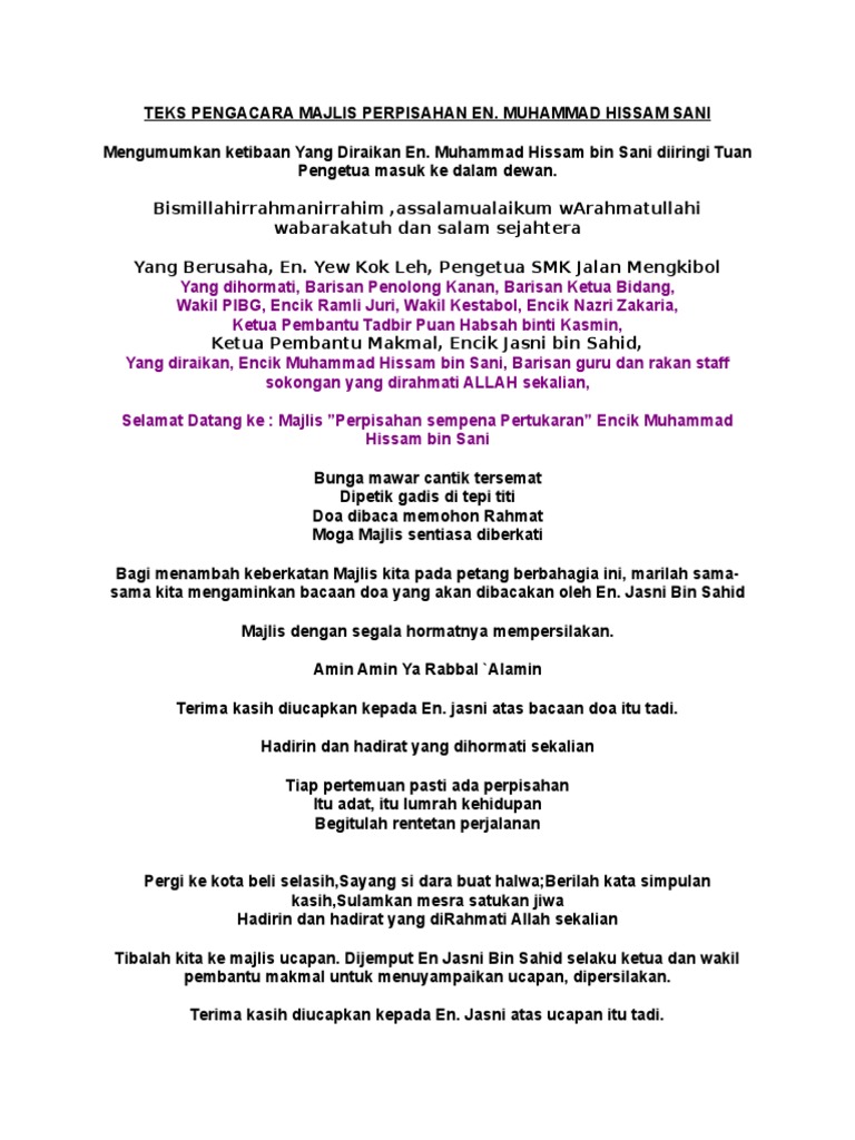 Teks Pengerusi Majlis Perpisahan Pdf